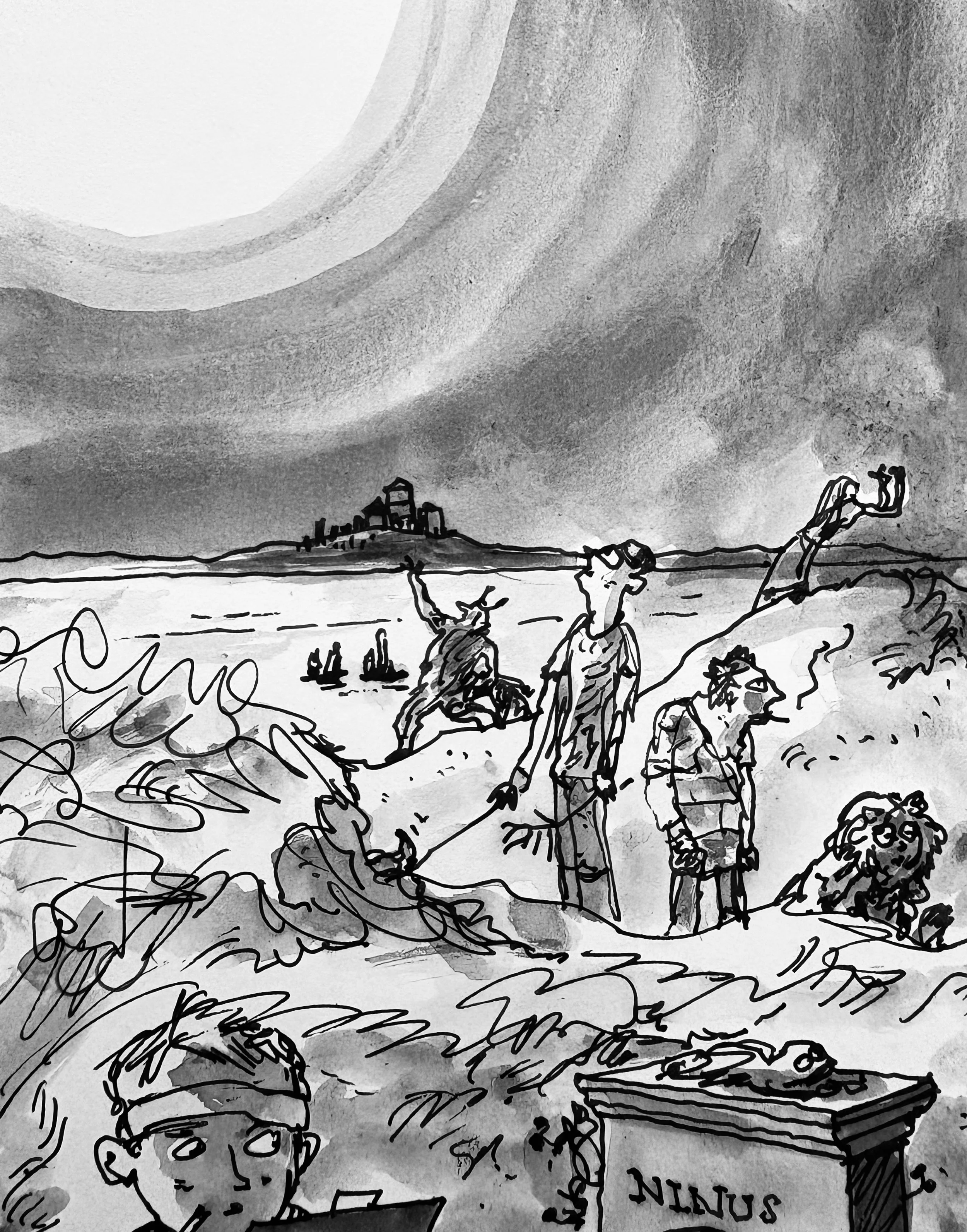 Robin Starveling is one of six Mechanicals in Shakespeare’s 1595 comedy set in in an ancient Athens ruled by Duke Theseus, famous in mythology for slaying the Minotaur. It’s a place of strict laws and social codes, set alongside a green world in chaos, teeming with imaginary beings. The tailor Starveling cuts a slight figure, though his name could be ironic. He is a smudge, a sketch rather like one of Inigo Jones’ ante-masque drawings. His half dozen lines suggest a fearful temperament, in contrast to bold and brash Nick Bottom the weaver. The Mechanicals enter a competition to stage an entertainment to celebrate the Duke’s wedding to Hippolyta, Queen of the Amazons.